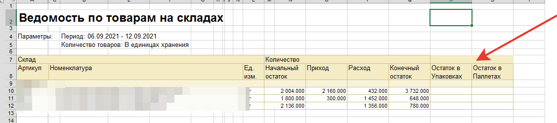 Нужно добавить 2 колонки с расчетом количества в уп. и паллетах.