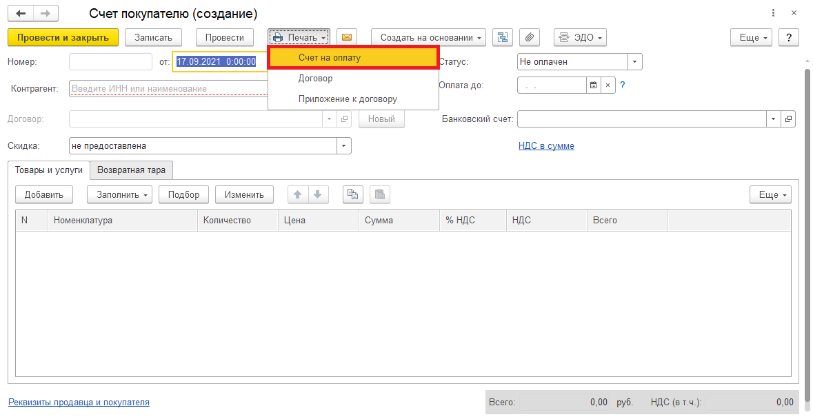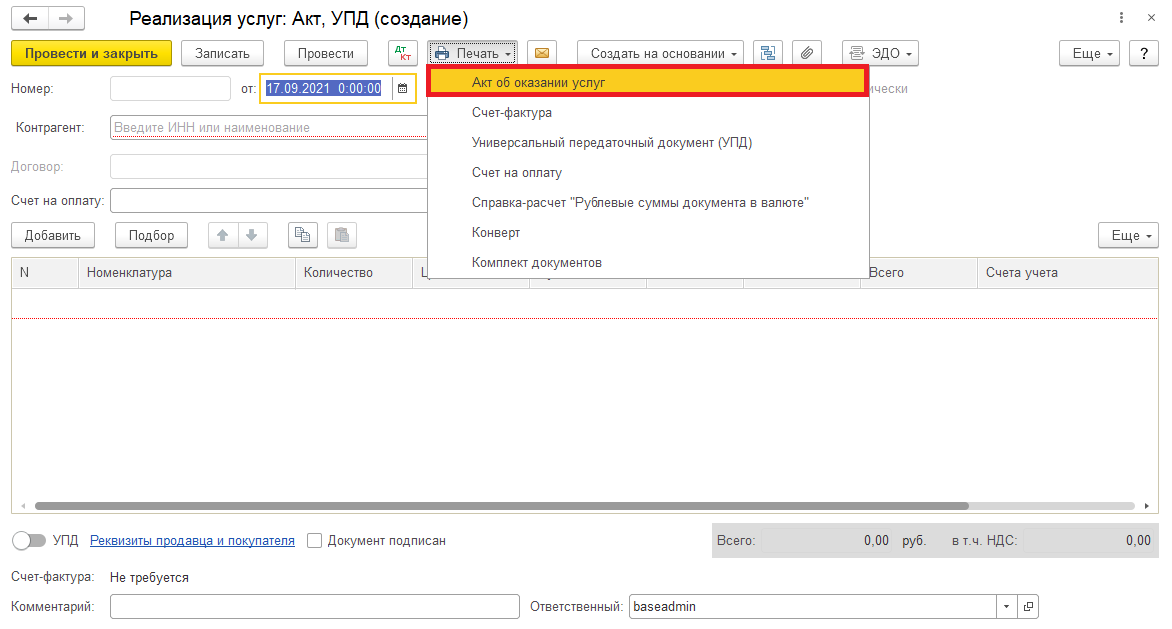 Создать внешние печатные формы Акт об оказании услуг и Счет-фактура.