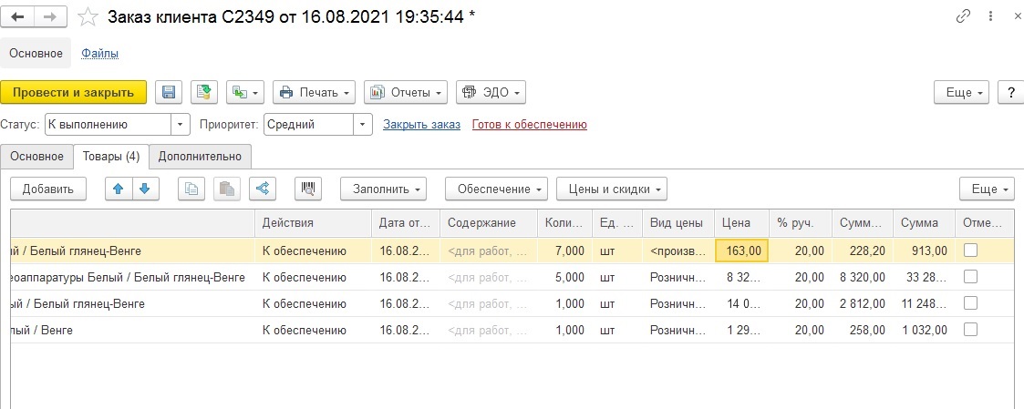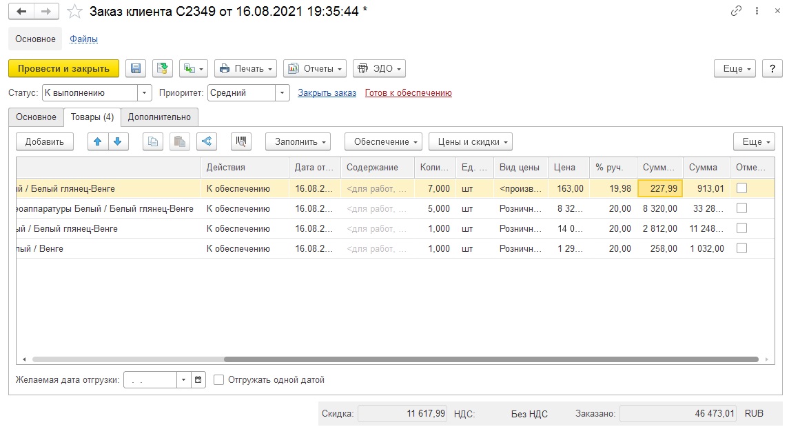 Есть документ Заказ клиента.