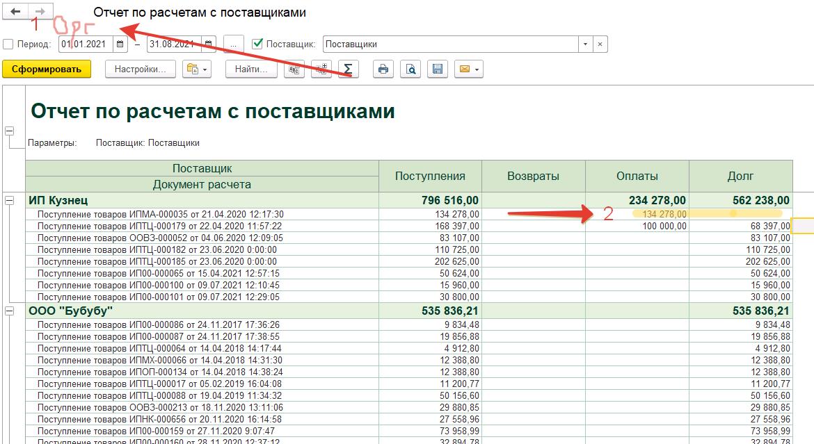 1) Добавить фильтр по Организации (Юр. лицу)