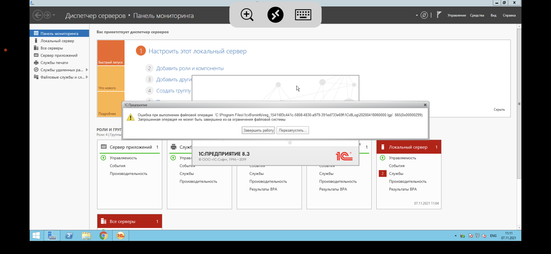 Срочно. Ошибка при запуске 1С. Ругается на файл ….\\\\\\\\1Cv8Log…