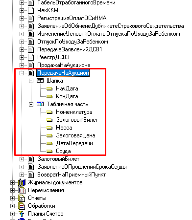 Нужно из неё перенести документы "Передача на аукцион" за нужный нам период и загрузить в типовую конфигурацию "Рарус:Ломбард 4" (бывшая ВДГБ:Ломбард) в документ "Подготовка к продаже".