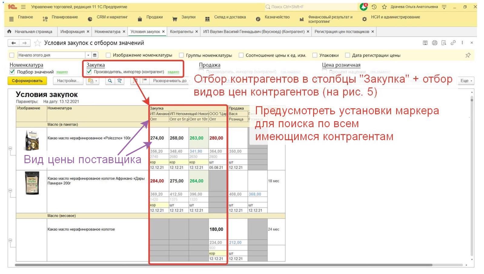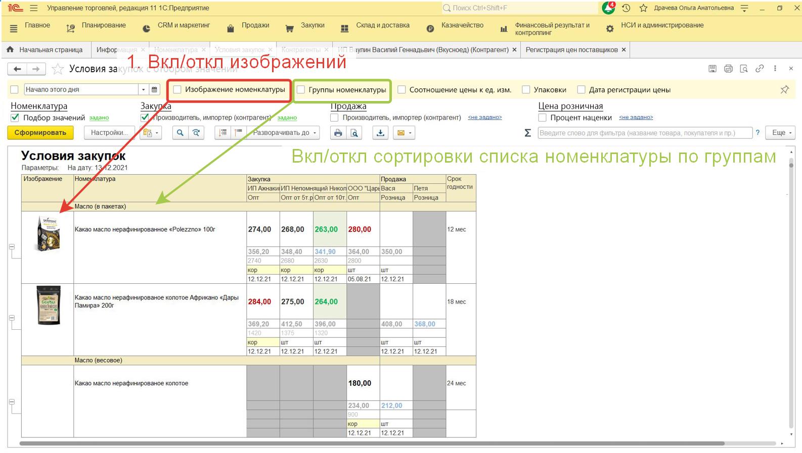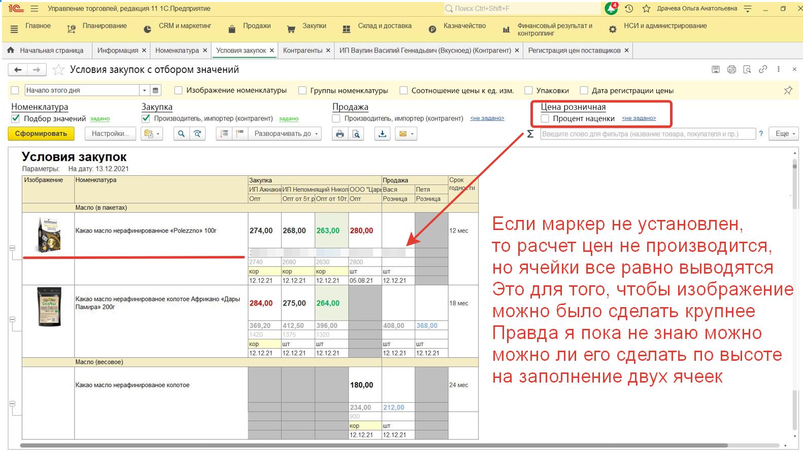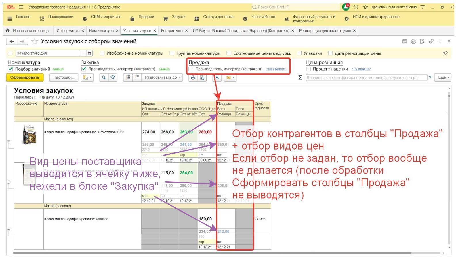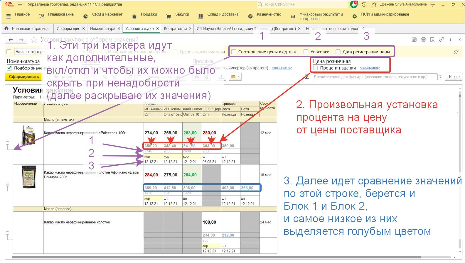 Если в программе можно включить какие либо строки и отборы (без доработок), то сперва это нужно сделать через Настройки (сейчас у меня отчет отображается в стандартном виде, но я знаю, что можно добавлять функции прямо в программе, самостоятельно не умею). Например отображение столбцов в табличной части. Может что то еще.