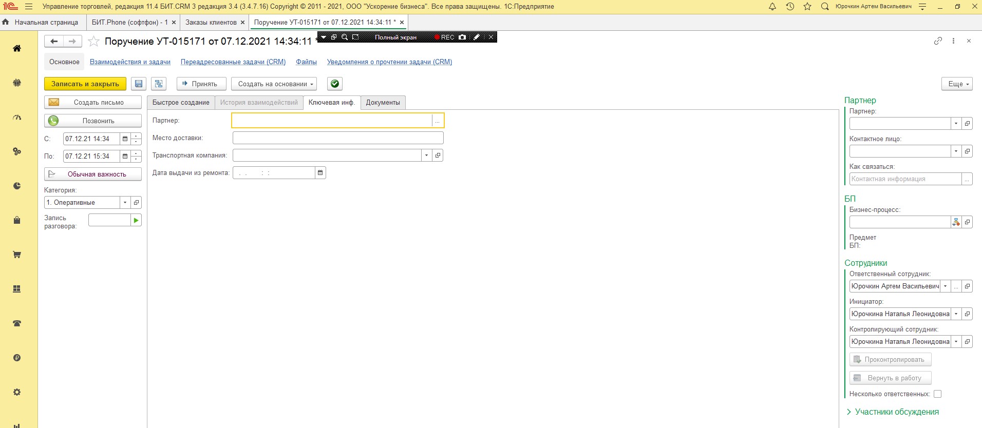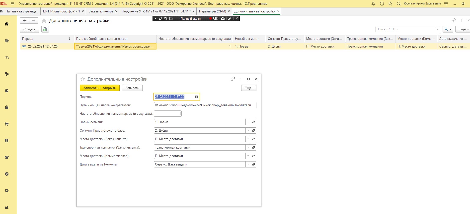 Доработать перенос дополнительных реквизитов в задачах конфигурация УТ 11.4+БИТ CRM 3.0