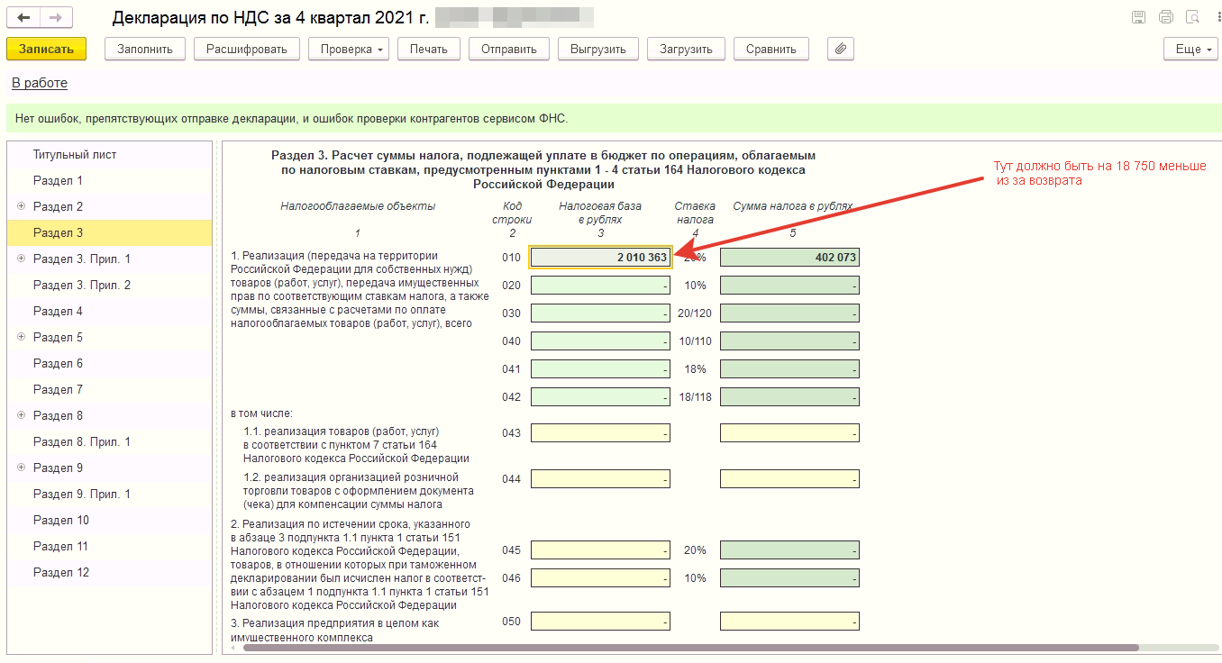 Бухгалтерия предприятия, редакция 3.0 - не добавляется возврат в декларацию НДС