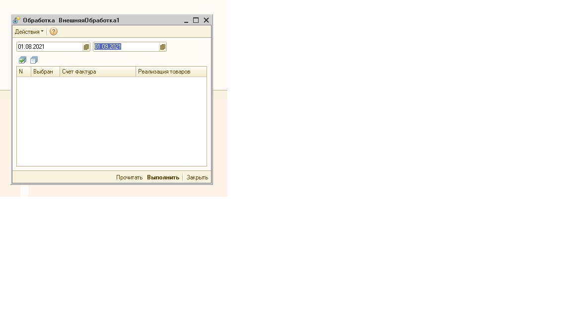 Требуется обработка, которая будет присваивать реализациям номера их счет фактур с отбором по периодам.