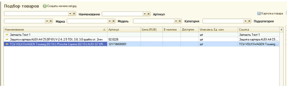 Доработать УТ 11 Создание фильтров для поиска товара в подборе в Заказ и реализацию