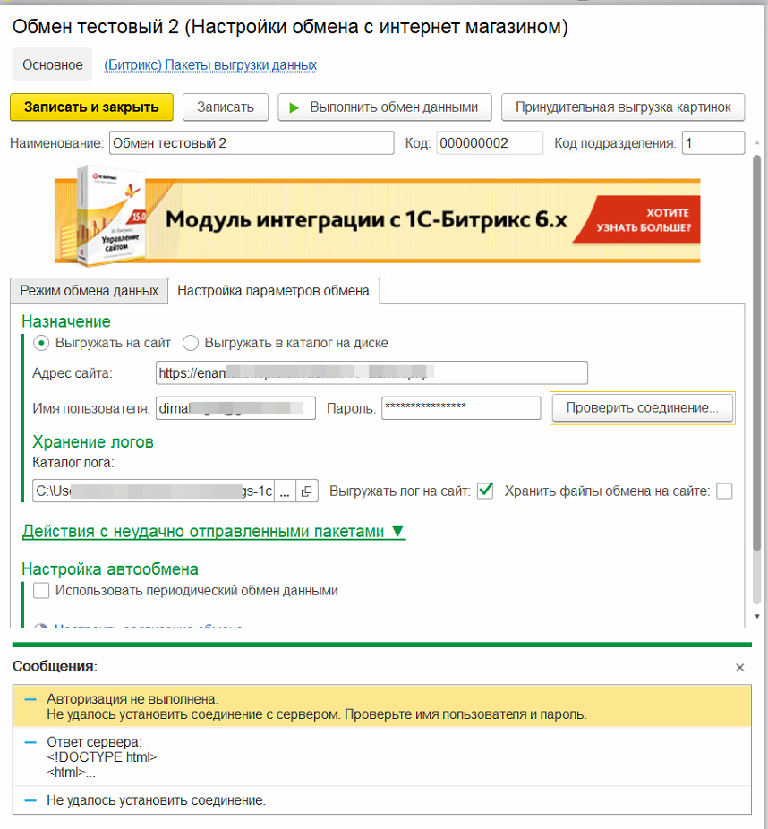 УНФ 1.6 - настроить синхронизацию с сайтом