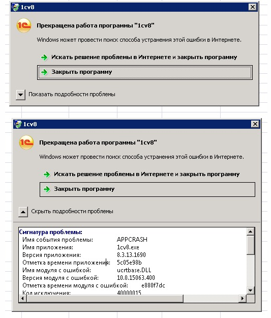 Имя приложения: 1cv8.exe