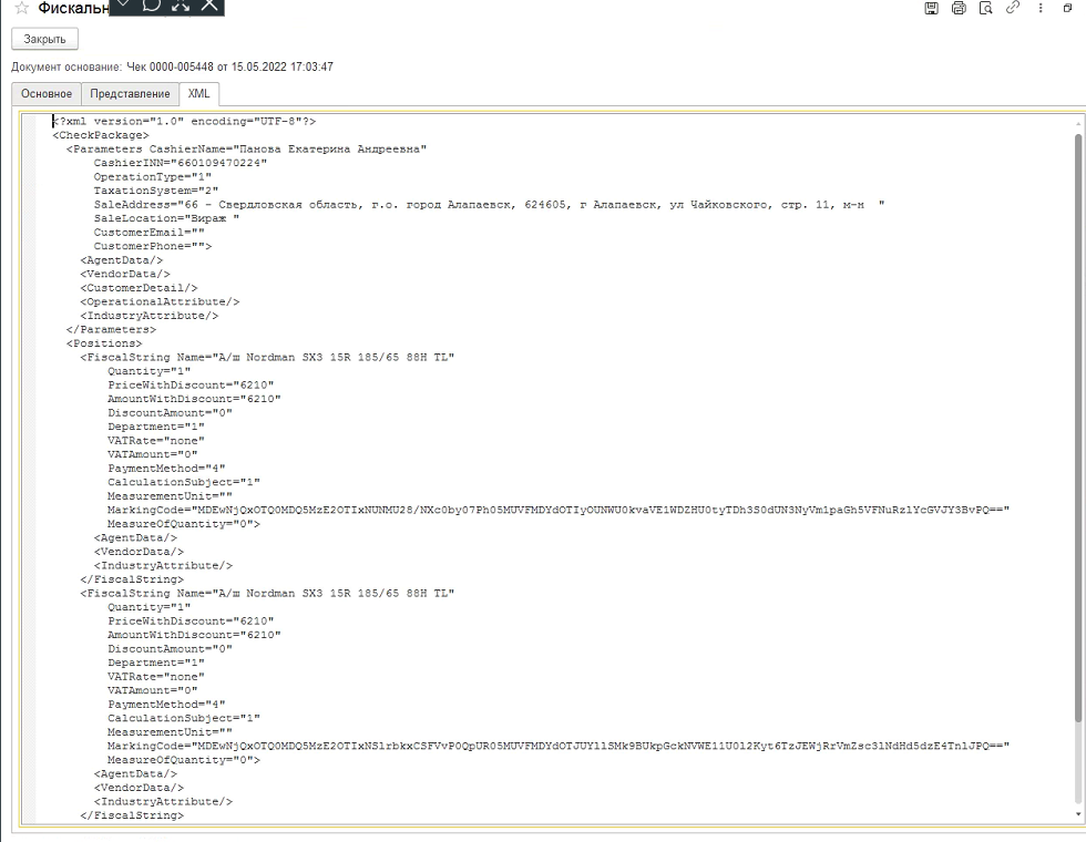 2022-06-03_17-35-23 - XML чека маркированного товара в 1С Розница