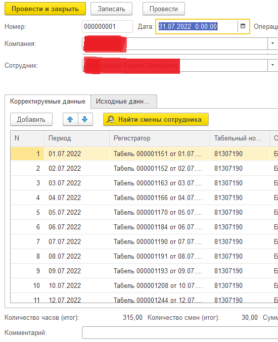 у меня стоит отбр по Сотруднику, а один сотрудник может отработать 30 дней, это значит нужно открыть 30 табелей(документов), для внесения каких либо изменений.