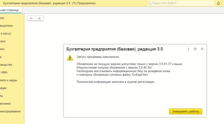 "Обновление на текущую версию допустимо только с версии 3.0.61.37 и выше.