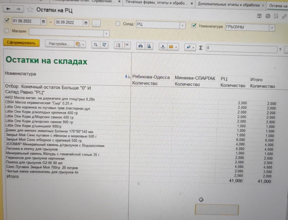 В колонку складов нужно присоединить остальные склады с остатками только тех позиций, что есть на РЦ