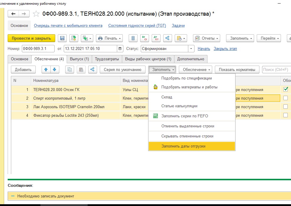 Была сделана кнопка в расширении "Заполнить даты отгрузки" - ее суть следующая она берет номенклатуру которая в табличной части текущего документа и ищет этапы где выпускается эта номенклатура и если есть ожидаемый выпуск - то проставляет дату в табличной части,