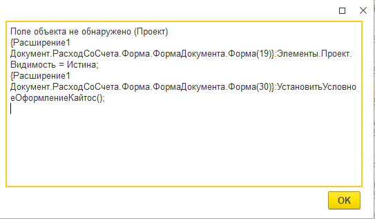 После перехода на новую платформу версии 8.3.22.1603 в расширении появилась ошибка