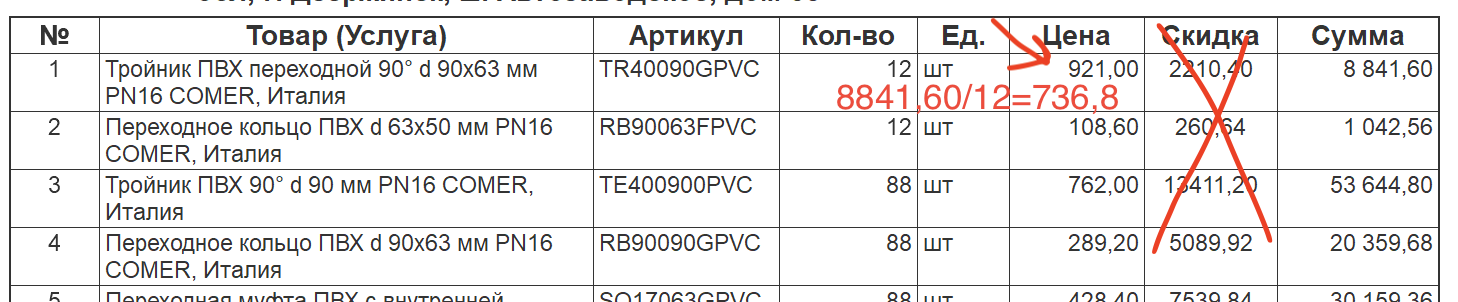 Пример строки: №-Товар (Услуга)-Артикул-Количество-Единица измерения-Цена (со скидкой!) за шт-Сумма (со скидкой)