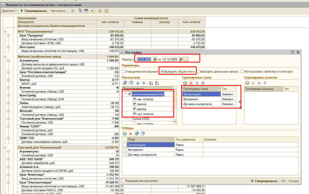 2. Ведомость по взаиморасчетам с контрагентами