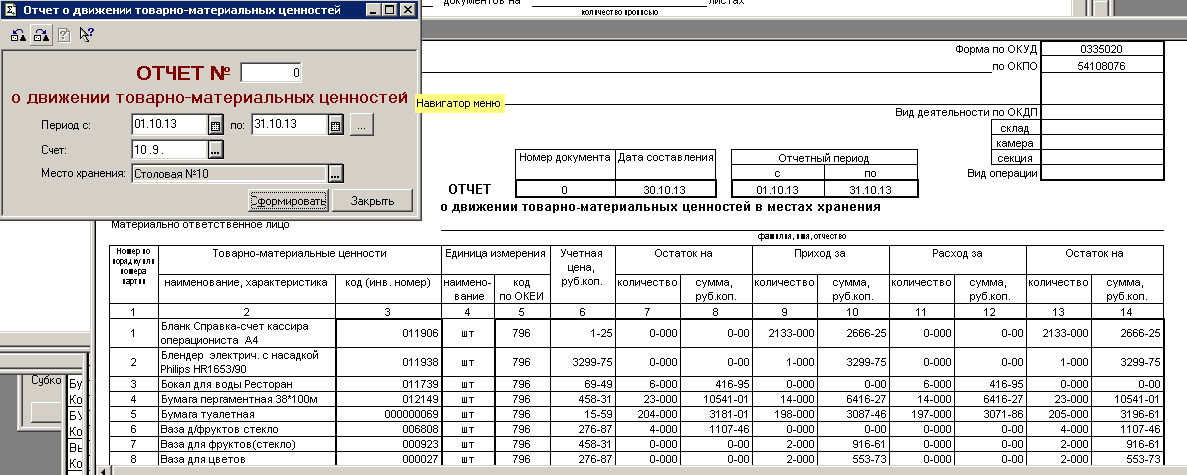 Отчет О Движении ТМЦ-МХ20.