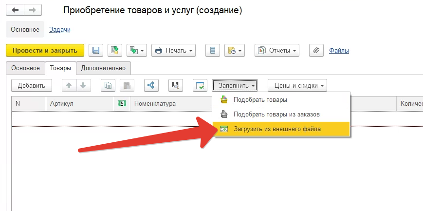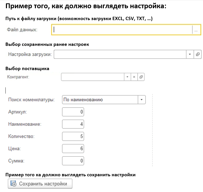 Для загрузки накладных и УПД в 1С необходимо доработать стандартный функционал "Загрузка из внешнего файла"