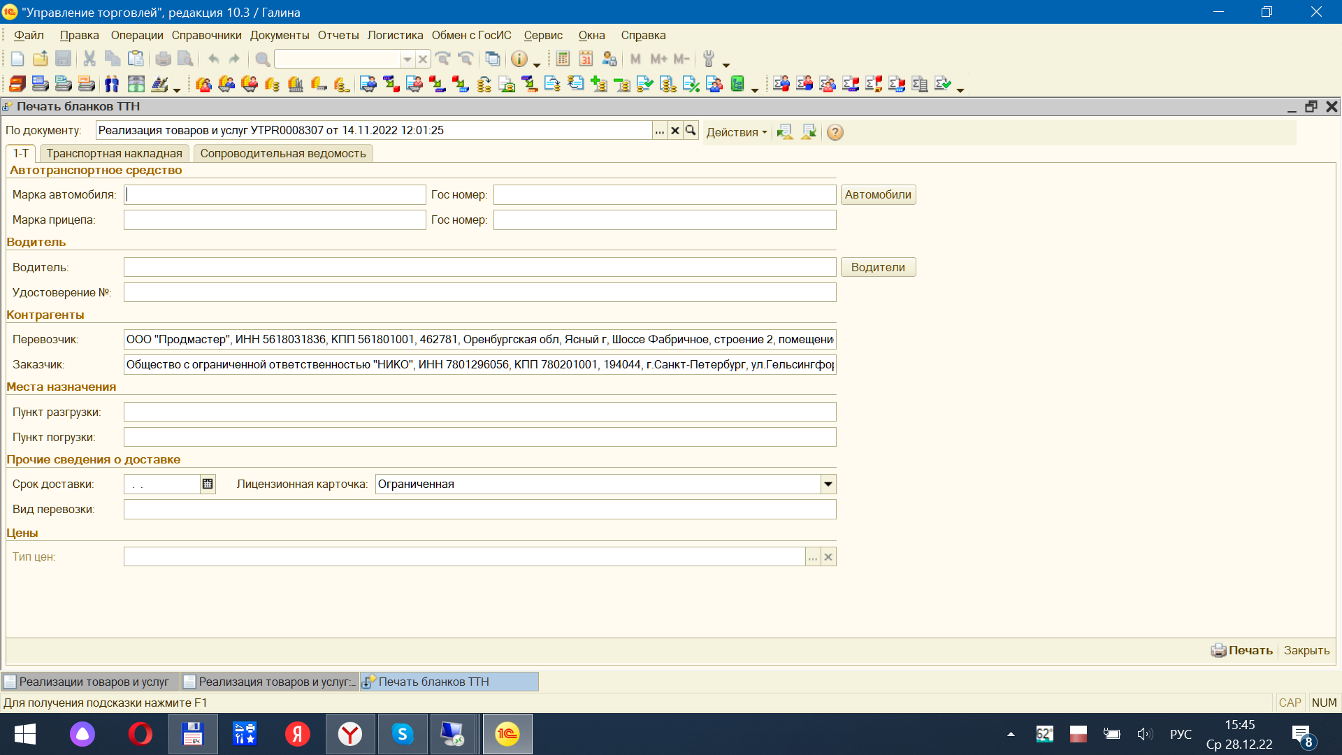 Требуется доработать внешнюю печатную форму ТТН для УТ 10.3, задача - нужно что бы срабатывало условие - если строк товара менее 8-ми, то все должно вместиться на 1 страницу в портретном формате листа с уменьшением размера текста, текст должен менять пропорционально в зависимости от кол-ва строк товара (следующие листы по тому же принципу). Так же нужно добавить возможность выбора разных адресов для одного заказчика (грузополучателя) по типу как уже сделано в форме выбора разных водителей. Все доработки производятся во внешней печатной форме (на прикрепленном скрине виден диалог настроек внешней печатной формы). Более подробно могу написать в переписке.