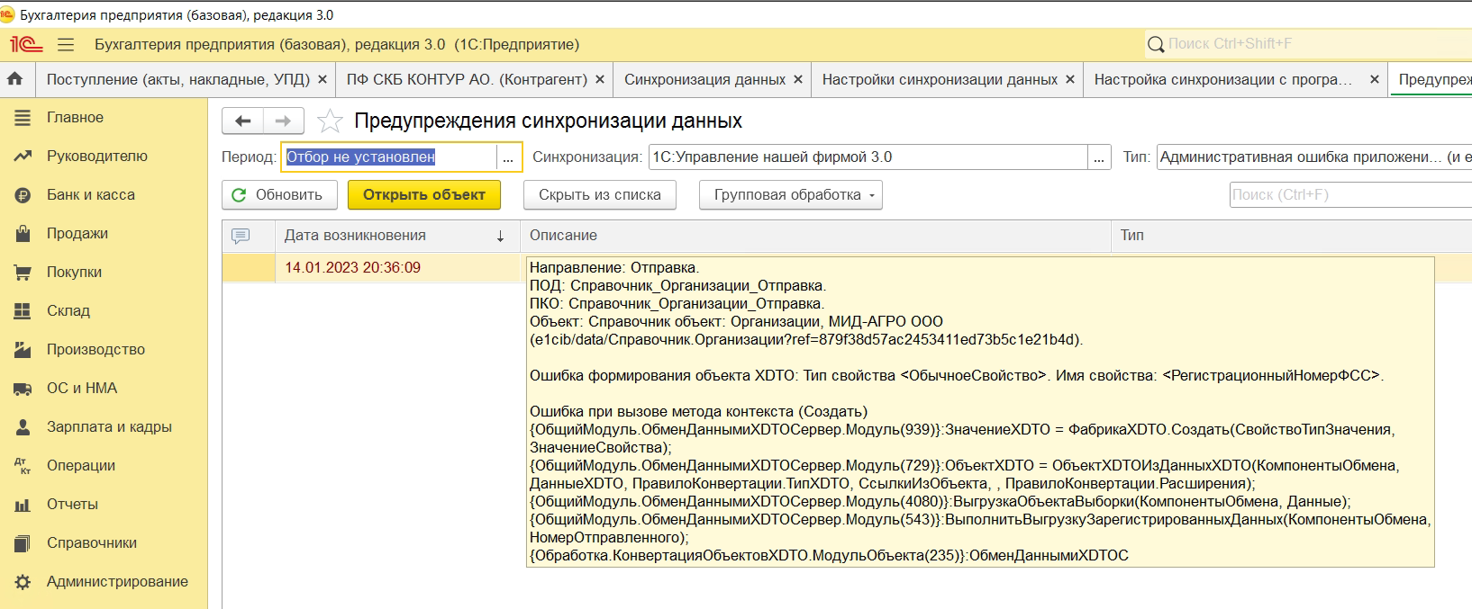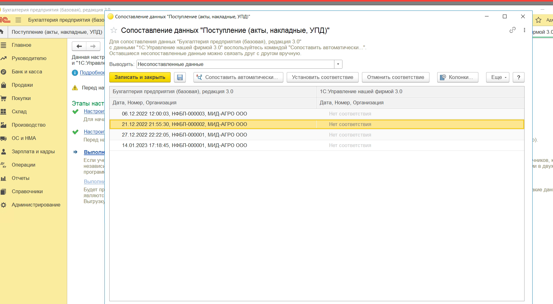 Завершаю настройку обмена, запускаю обмен... типа все ок, но эти документы с скрина в УНФ не приходят.