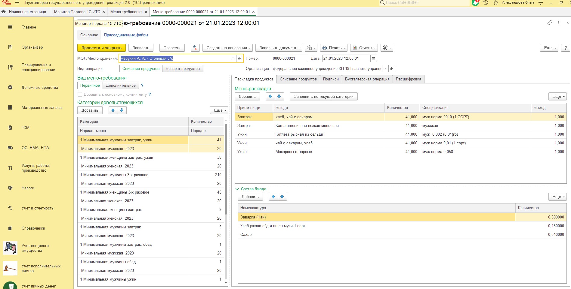 Необходимо доработать вывод печатной формы “Меню-требование”. Меню требование выходит общее по всем категориям. В справочнике “Категории довольствующихся” элементы справочника разбиты по папкам. При выводе печатной формы надо, чтобы выходило несколько меню-требований. В каждой меню-требовании должна быть информация по категориям, принадлежащим одному родителю в справочнике “Категории довольствующихся”. Подобное реализовано в бгу 1 ред (могу пустить по удаленке, показать на реальной базе.) Во вложении печатная форма "Как есть" и "Как надо"