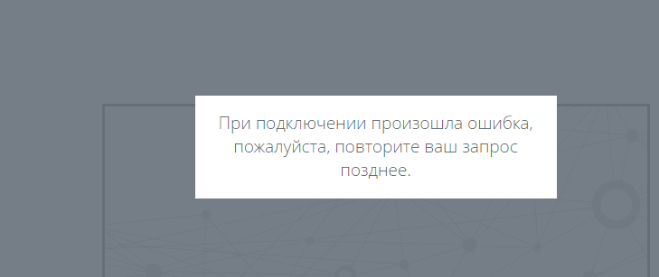 "При подключении произошла ошибка, пожалуйста, повторите ваш запрос позднее"