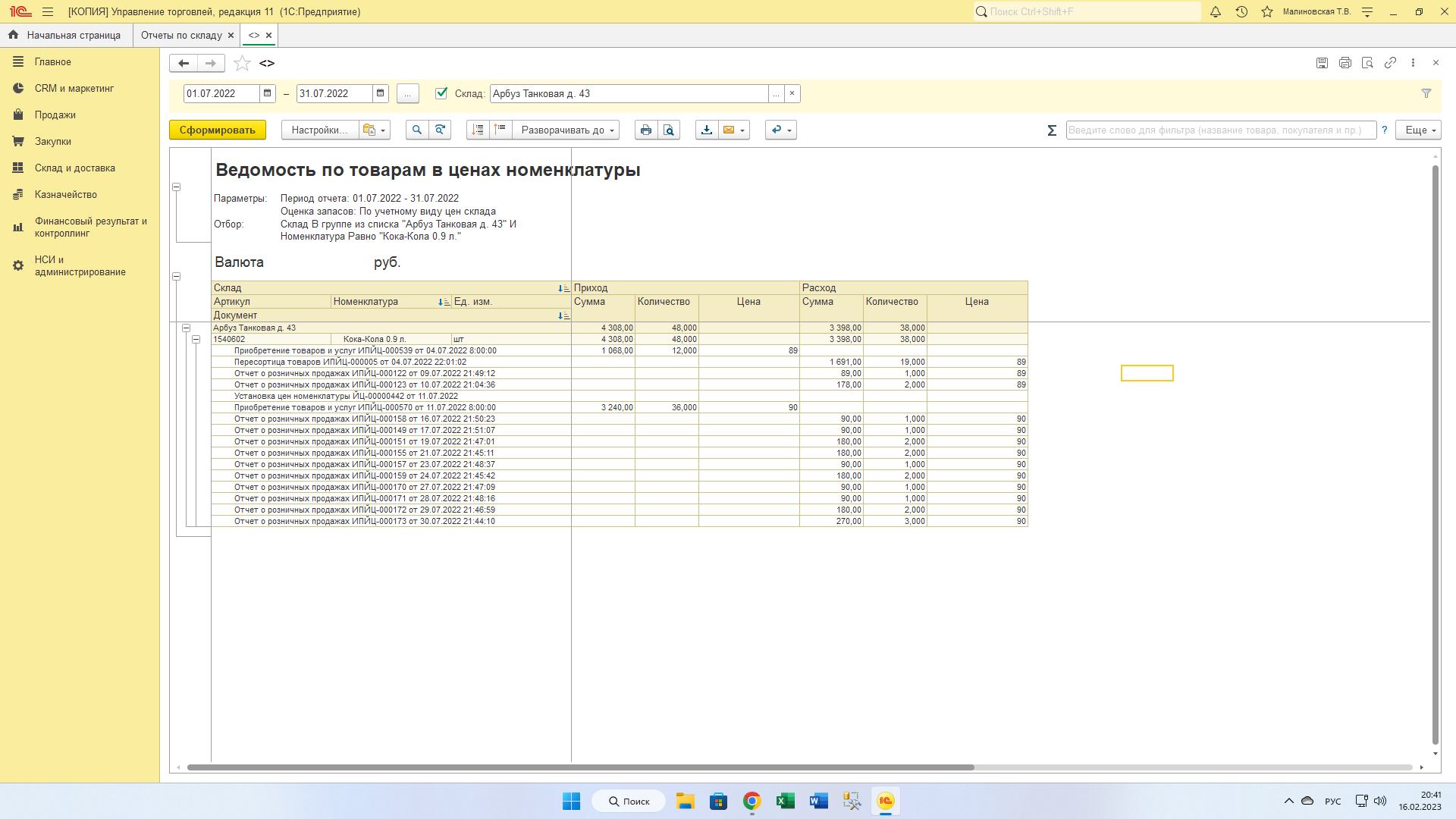 добавить графу - Цена закупки и реализации. Данная цена берется закупка - поступление, реализация - отчет о розничных продажах.
