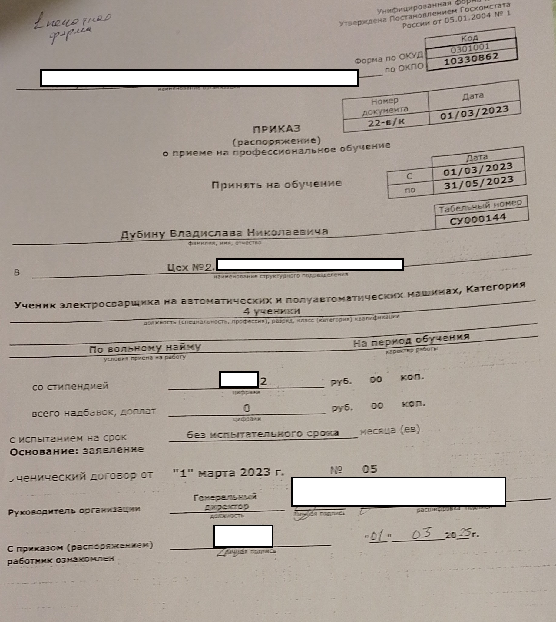 Ввод данных - Прием студента на практику. (ФИО и т.д.)