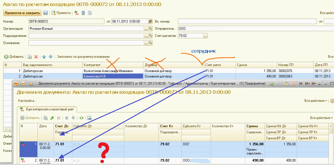 задача: при выборе счетов 70 или 71 скрыть контру и вывести сотрудника (новый доп.реквизит), ну и есссно в проводках подставлять сотра