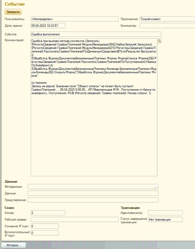 Запись не верна! Значение поля "Объект оплаты" не может быть пустым!: ГрафикПлатежей: , , 06.04.2023 0:00:00, , ИП Мирмахмудов М.М., Поступление от банка по эквайрингу, Поступление, RUB (Регистр сведений: График платежей; Номер строки: 1)