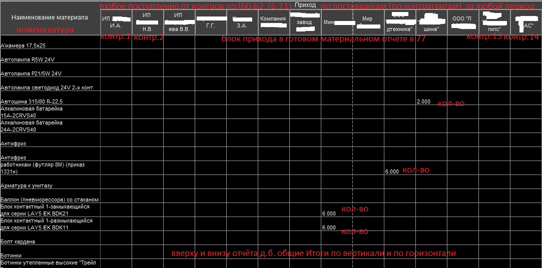 Нужно добавить Галочку (по Умолчанию как есть сейчас), а при её включении что бы всё начинало в Приходе (в Поступлении) разворачиваться (раскрываться по Контрагентам) как на скрине (во вложении в этом ТЗ) из подобного рабочего мат. отчёта из 1С 7.7.
