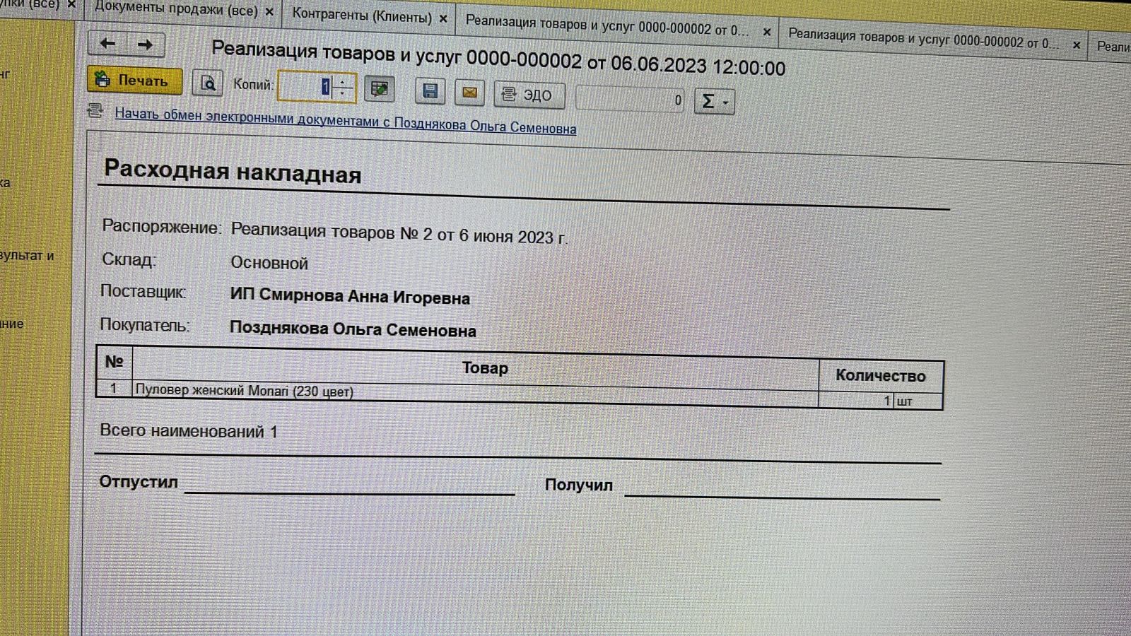 Артикул, Наименование, Цвет, Размер, Количество, Цена, Сумма.