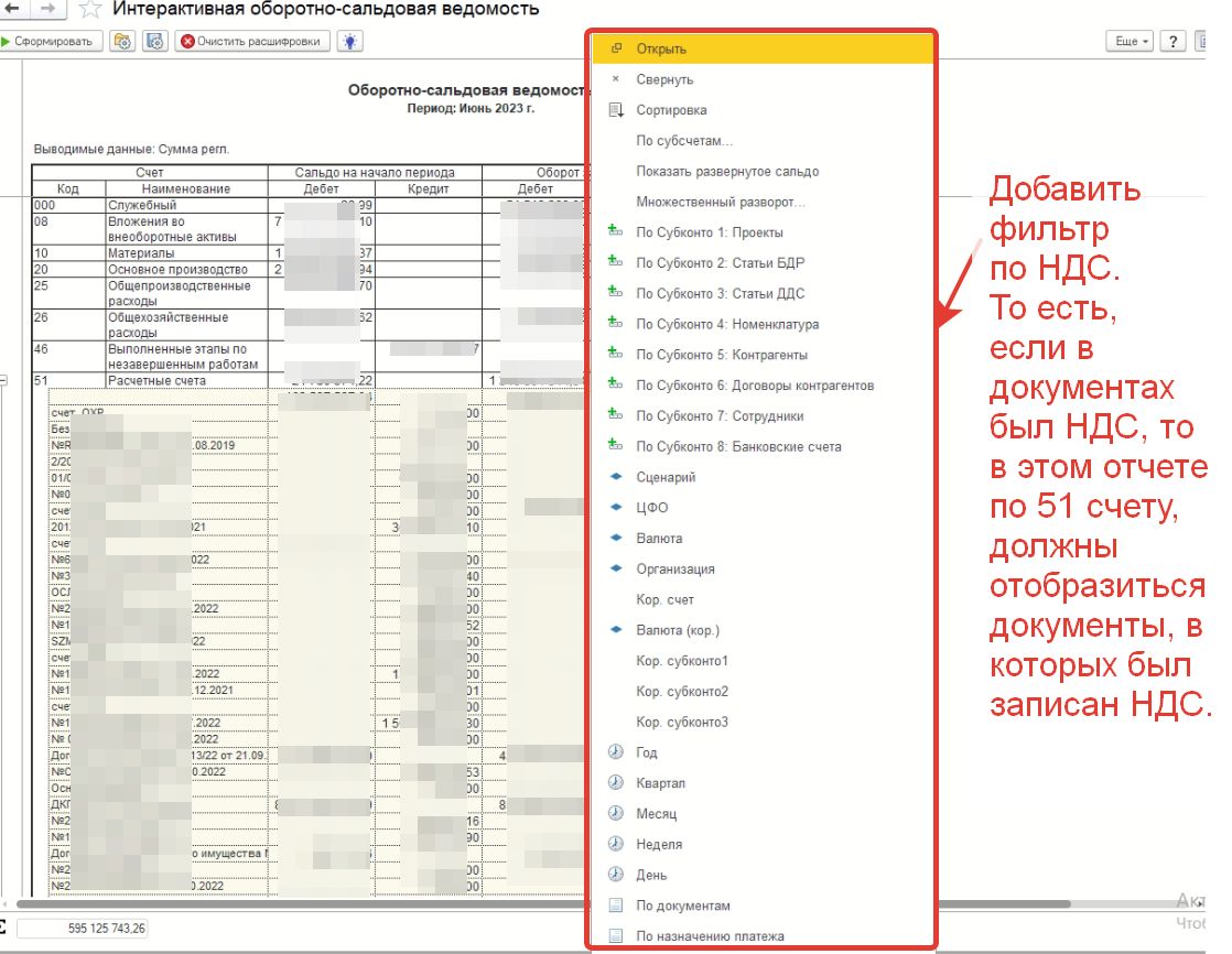 В отчете нужно реализовать фильтр, который может показывать только те данные, в которых есть НДС.