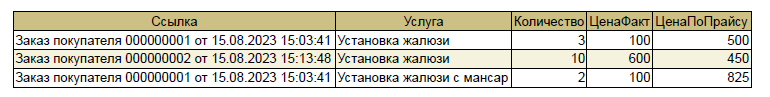 В журнале Заказы покупателя есть список документов. В этих документах отражена фактическая цена за услугу, которую выставили клиенту.