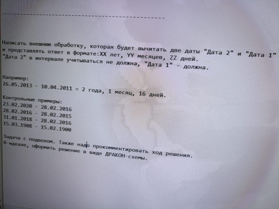 Студенческая задачка - сделать обработку по вычитанию дат