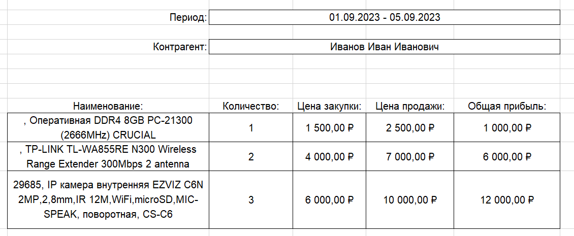 Где формула расчета общей прибыли: