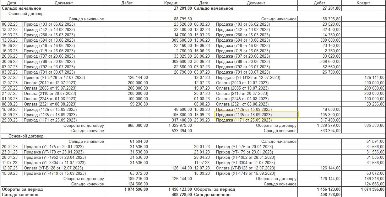 Нужен расчет по договорам с клиентом и поставщиком, а так же начальное и конечное сальдо.