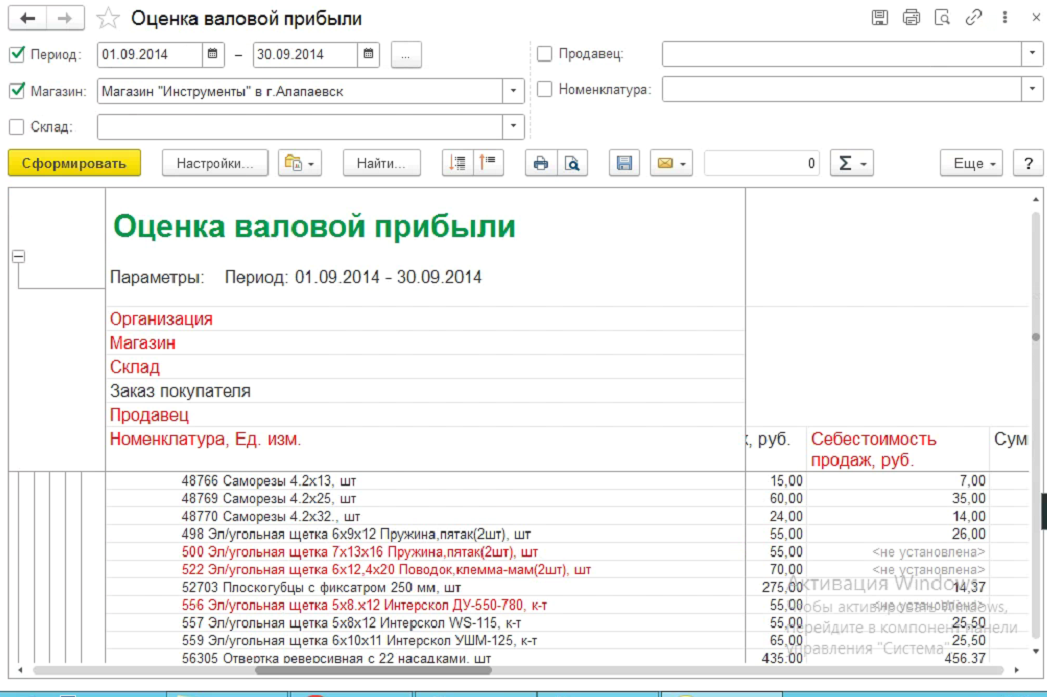 1С Розница в отчете "Оценка валовой прибыли" по многим товарам не показывает...