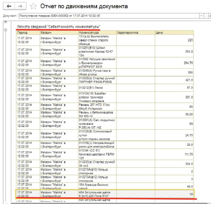 Движения документов не отличаются от номенклатуры у которой себестоимость определена