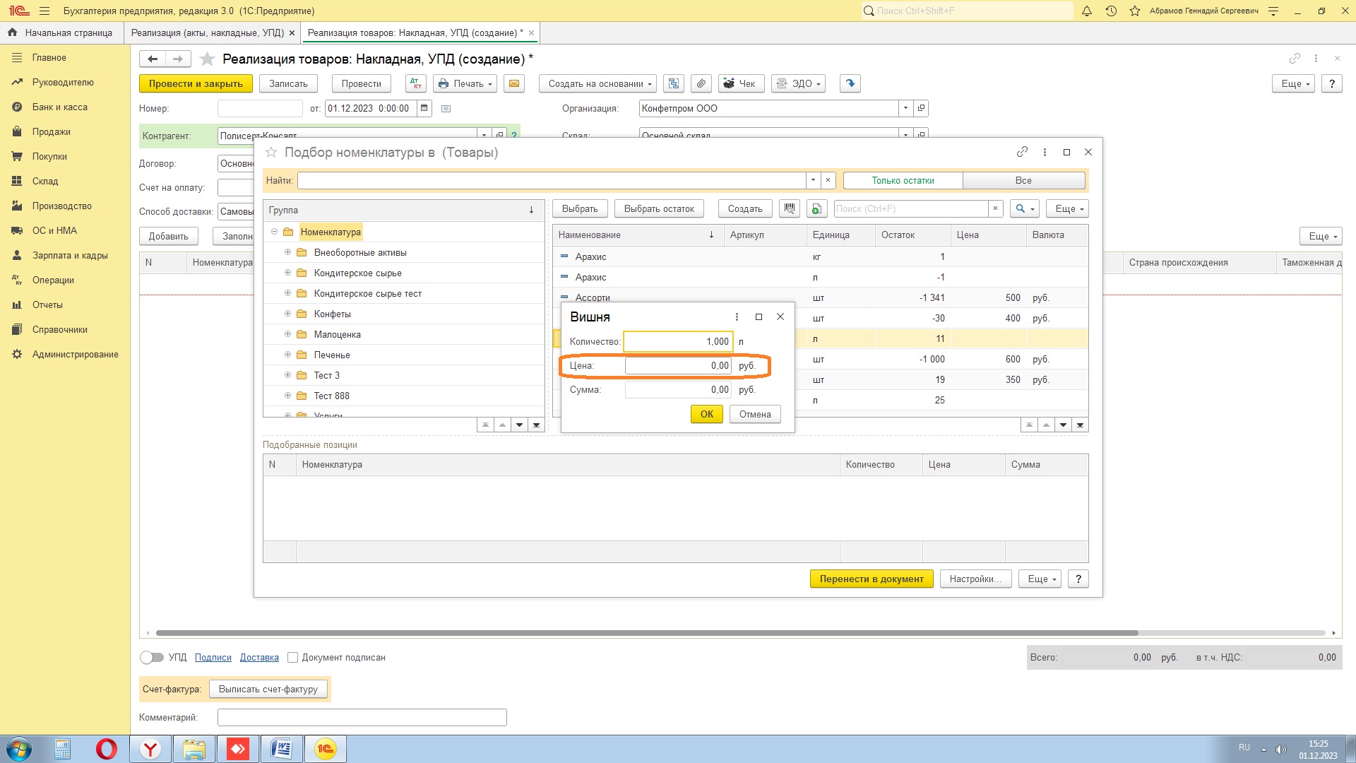 Обработка подбора номенклатуры при выборе элемента номенклатуры запрашивает "введите количество", а цену не запрашивает. Тянет ее, как в любых конфигурациях 1С, из типа цен, при наличии данных. А при отсутствии данных соответственно по результатам подбора цена формируется нулевая, и пользователь редактирует ее в ТЧ документа. Поскольку цены в данном случае регулярно меняются - регистрировать и хранить их в справочнике Цен номенклатуры очень трудоемко. Нужно добавить возможность указания вручную при подборе номенклатуры не только количества, но и цены, как это происходит например в обычной Бухгалтерии 8 (см скрин).