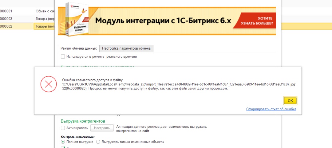 Ошибка обмена с сайтом битрикс