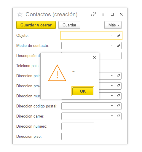 В форме справочника "PersonasFísicas" в табличной части при выборе значения должна открываться форма регистра сведений. Но мне выдает окно с пустой ошибкой.