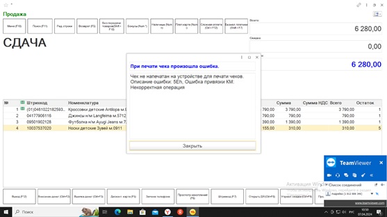 Время от времени на кассах не удается пробить чек, выскакивают следующие ошибки: