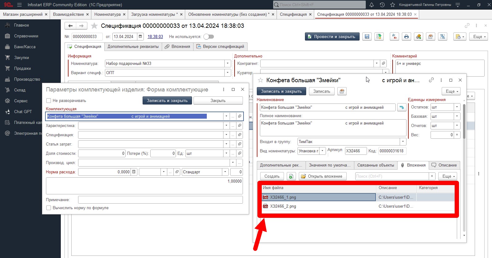 В 1С настроить выгрузку фото из спецификации (из номенклатуры) в папку. Сделать такую кнопку "выгрузить фото"