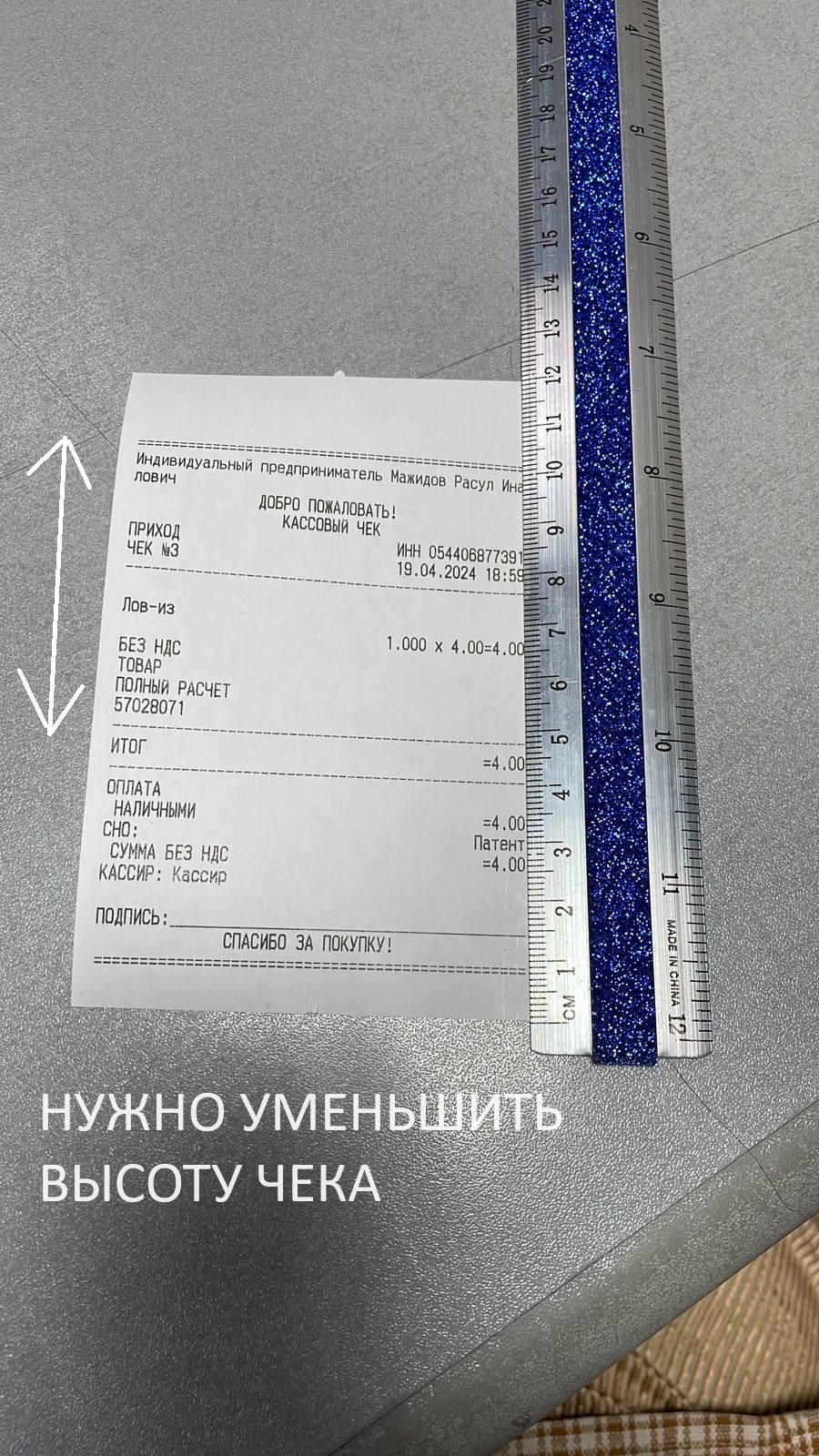 Изменить шаблон чека, который выдает принтер чеков