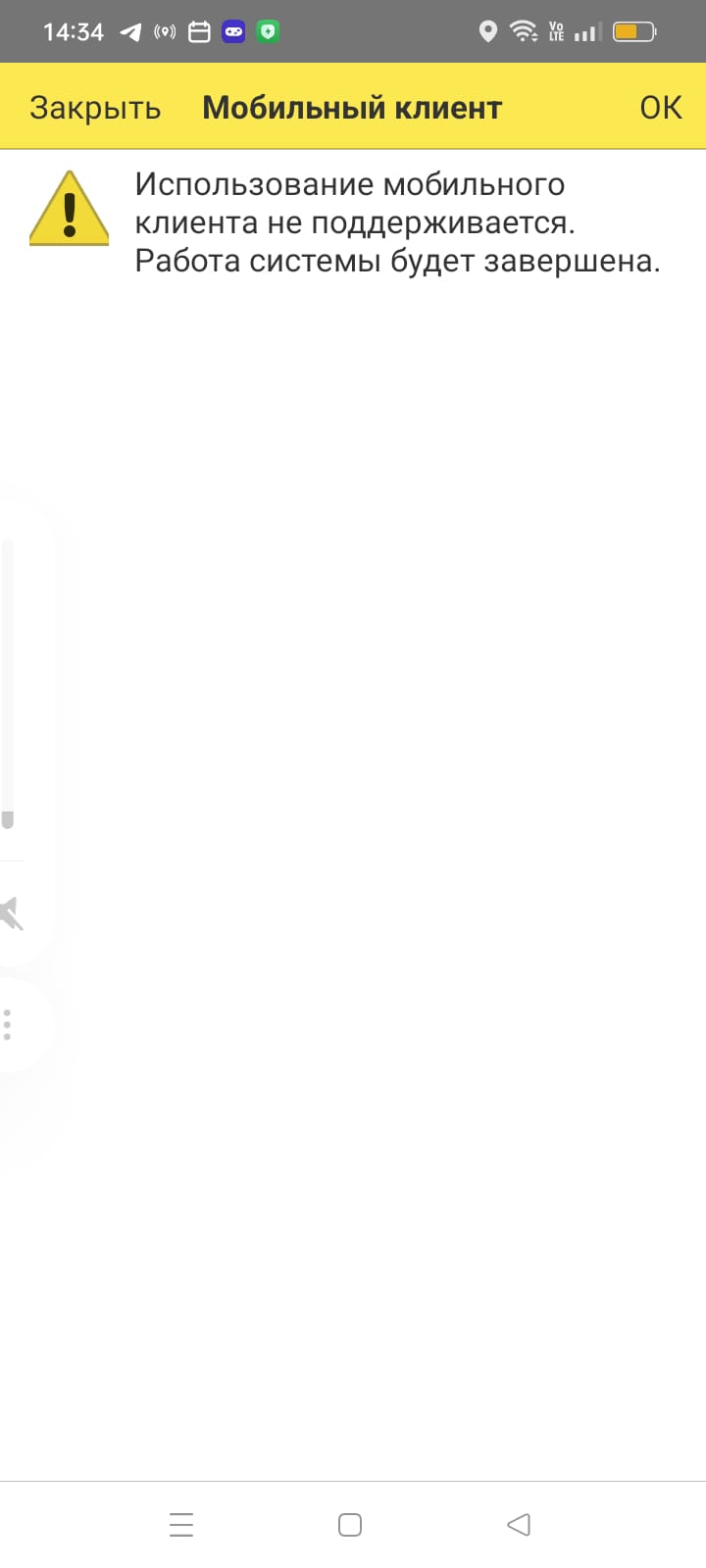 Убрать ошибку Использование мобильного клиента не поддерживается работа системы будет завершена