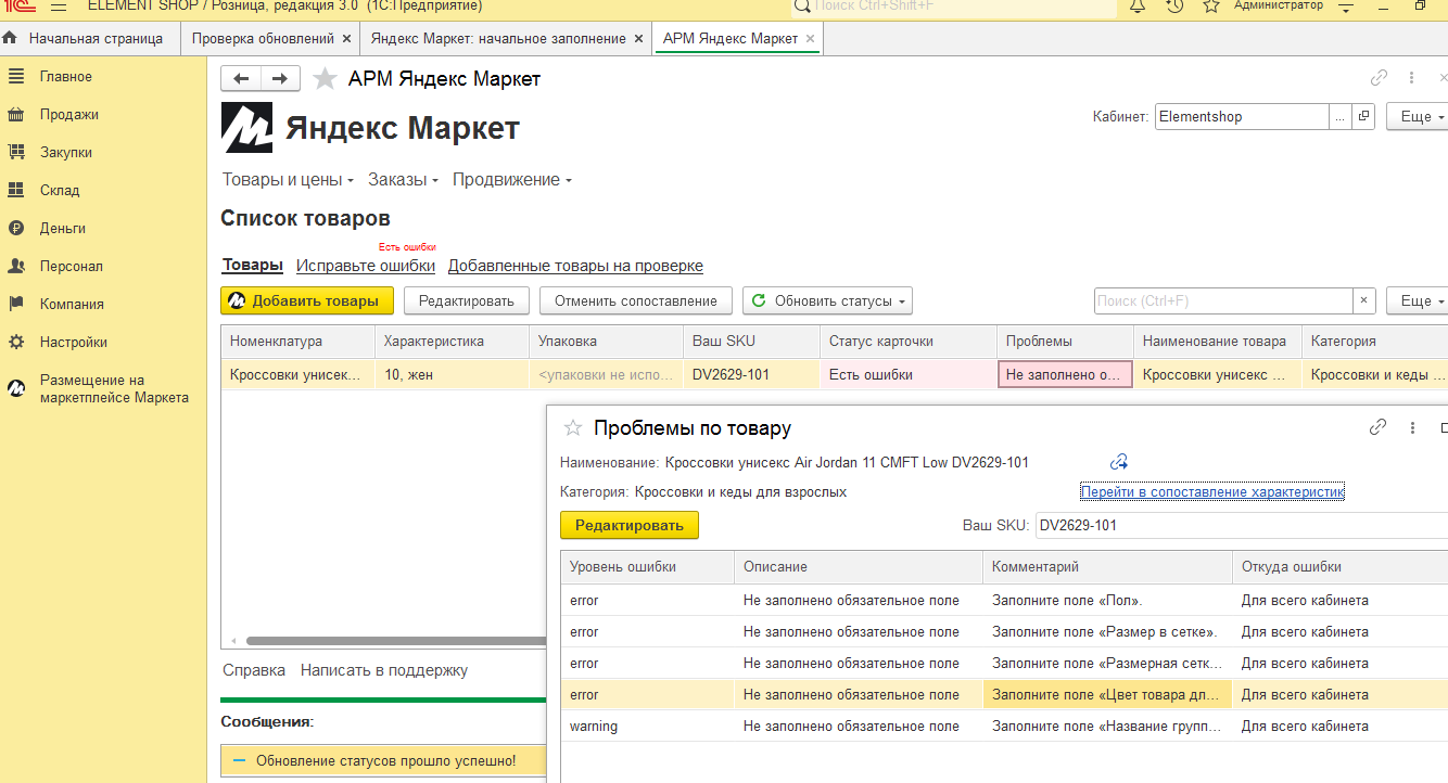 1. Подключение 1С к Wildberries, OZON, Яндекс.Маркет, МегаМаркет, Авито, ДРОМ, Вконтакте, Юла, 2ГИС.