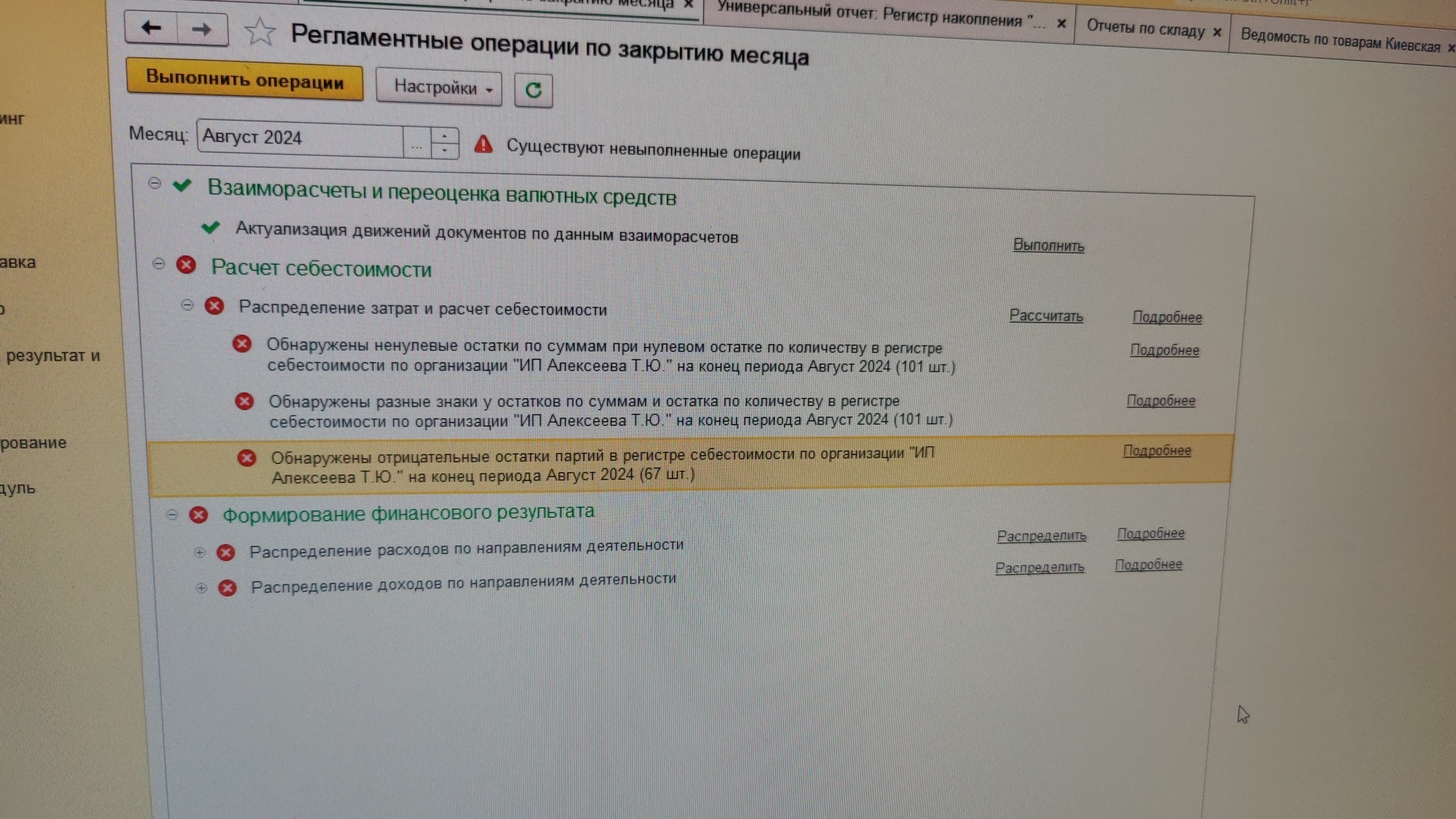 При закрытии месяца,ошибка распределения затрат за прошлый период (нулевые остатки,разные знаки,отрицательные остатки),подробнее расскажу ичполнителю.