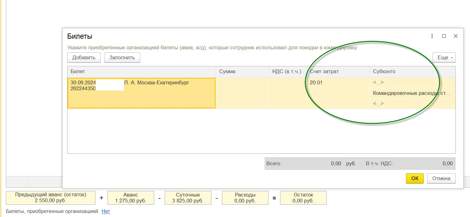3) Показать где настроить или доработать счета учета по умолчанию для билетов в Авансовом отчете.